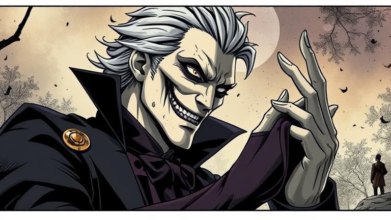 Dio Brando stood atop the jagged cliffs overlooking the desolate land he once ravaged. His golden hair danced in the wind as he contemplated the whispers of the past, echoes of a life filled with ambition and malice. Suddenly, a voice interrupted his solitude, ‘You look troubled, Dio. Does power not bring you joy?’