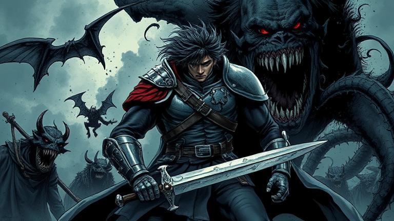 In the heart of a desolate battlefield, Guts stood, bloodied and weary, yet resolute. The air was thick with the scent of iron and ash as he gazed across the landscape littered with the remnants of both friend and foe. Underneath the dim light of a blood-red moon, he clenched the hilt of Dragon Slayer tighter. “I can’t keep running from my demons… it’s time to face them head-on,” he muttered, grim determination etched on his scarred face.