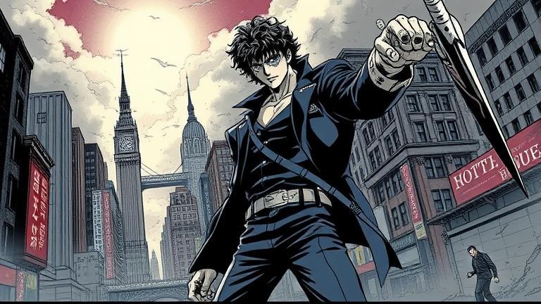 In the heart of a bustling city, where shadows danced with uncertainty, Jotaro Kujo stood near the edge of a rooftop, gazing at the chaotic streets below. The weight of his past echoed in the silence of dawn, but he was soon beckoned back to reality. Nearby, a mysterious figure emerged from the mist, radiating an ominous power that sent chills down Jotaro’s spine.