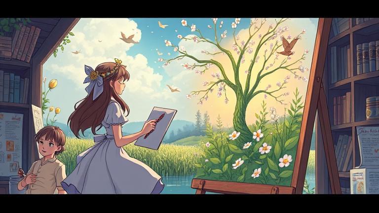 Marissa thought deeply. ‘It brought you to life… but what else?’ She took a deep breath, found a clear canvas among the golden grass, and began to paint a shimmering waterfall. The strokes flowed like water from the brush, and before her astonished eyes, the waterfall cascaded beautifully into sparkling pools.