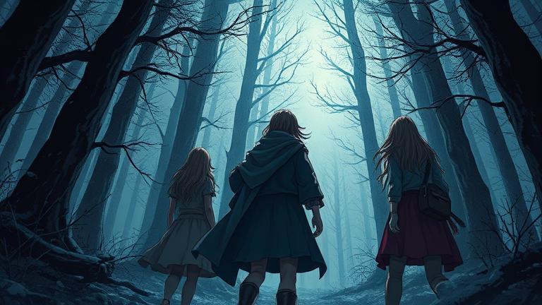 Back with Mia and Sarah, the two girls stumbled across a twisted path leading deeper into the woods, with mist curling menacingly at their feet. ‘If we keep searching, maybe we can find another way out,’ Mia suggested, trying to mask her fear. ‘Or maybe we’ll find more about Elara,’ Sarah added hesitantly.