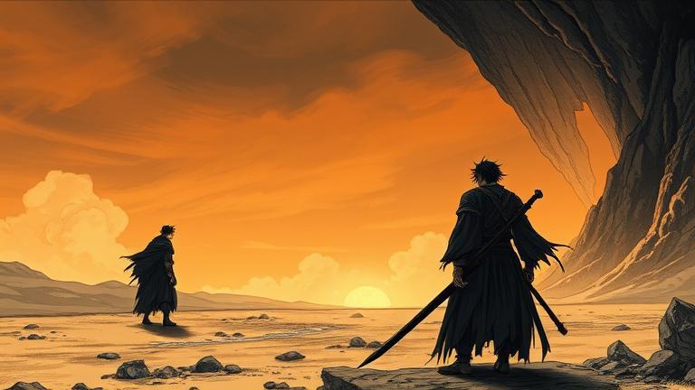 As Guts stepped out of the cave, the air felt lighter. The weight of his haunted memories still lingered but now blended with a newfound determination. He could see the horizon bathed in the soft hues of dawn tempted him forward.