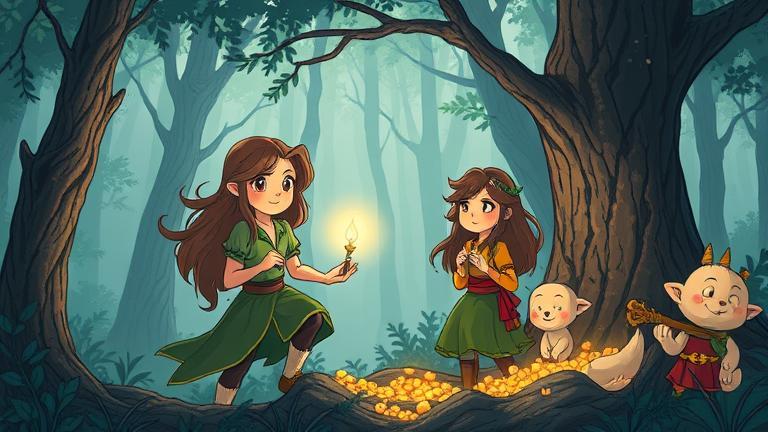 In the heart of a small village surrounded by towering mountains, lived a brave girl named Elara. She had an adventurous spirit and often dreamed of exploring the mysterious Whispering Woods that bordered her village. One sunny afternoon, as the golden rays kissed the earth, Elara gathered her courage and ventured into the woods for the first time. As she stepped into the thick foliage, a warm breeze greeted her, carrying soft whispers that echoed through the trees. ‘Welcome, traveler,’ a voice chimed. Elara turned to see an elegant doe with shimmering fur. ‘Who are you?’ Elara asked, wide-eyed. ‘I am Leora, the guardian of these woods. You are brave to wander here. Few dare to step beyond the threshold,’ the doe replied. Elara smiled. ‘I want to see the magic everyone talks about. Does it truly exist?’ Leora nodded. ‘It does, but it is not always what you expect. Follow me, and I will show you.’ Intrigued, Elara followed Leora deeper into the woods, where vibrant flowers danced to the rhythm of the gentle wind. Suddenly, they stumbled upon a group of animals engaged in a lively discussion. A wise old owl, perched on a branch, was outlining the day’s plan. ‘Today, we confront the creeping shadows that threaten our home,’ he hooted gravely. Elara approached, curiosity bubbling inside her. ‘What shadows are you talking about?’ she queried. From behind her, a boisterous rabbit named Felix piped up, ‘It’s dark magic creasing through the forest, stealing the laughter and brightness. We need help from a human!’ Elara felt a sudden spark of determination. ‘I want to help! I may be small, but I can be brave.’ The animals exchanged uncertain glances, and Leora spoke softly. ‘Bravery does not always come from size, but courage must come from your heart.’ The wise owl, whose name was Orion, said, ‘If you wish to aid us, you must gather three artifacts that hold the key to sealing away the darkness. Are you ready?’ Elara nodded resolutely. As the sun began to set, casting an orange hue through the trees, the group set off on their quest. Their first destination was the Crystal Cavern, said to be guarded by the spirit of an ancient bear. Upon entering the cavern, echoes rang through the rocky passages. ‘Who dares enter my lair?’ a deep voice rumbled. ‘It’s us, Elara and her friends! We seek the Crystal of Courage!’ Elara shouted boldly. A massive bear emerged, shimmering with an otherworldly glow. ‘Courage cannot be given; it must be earned. How will you prove your bravery?’ Without hesitation, Elara exclaimed, ‘I will face my fear of the dark.’ The bear’s eyes lit up with respect, and he stepped aside. ‘Collect your prize, child. May it guide you forward.’ Elara found the crystal pulsating with light, and with it in hand, they left the cavern with newfound hope. Their next challenge lay at the River of Reflection, where they needed to retrieve the Pearl of Wisdom. The river flowed fiercely, and a sense of calm surrounded it. At the water’s edge, a silver fish leapt up, blocking their path. ‘To pass, share a secret.’ Elara took a breath, ‘I am afraid of being unloved.’ The fish nodded with understanding and replied, ‘Your honesty reveals your heart, and that is worthy of friendship. Cross.’ They collected the pearl, shining like a sunbeam, and were one step closer to their final artifact—The Feather of Change from the Eldest Tree. After many challenges, failures, and laughter, finally at the highest point in the woods stood the majestic Eldest Tree. Its branches danced in the wind, and it spoke with the voice of ages past. ‘What do you seek, little one?’ Elara stood tall, ‘I wish to protect these woods and our friendship with all its magic!’ The tree smiled, ‘Only with love can one wield true power in change.’ As the feather fell, Elara caught it, filled with deep inspiration. With artifacts in hand, they returned to the clearing where shadows lurked. ‘Let’s combine our powers,’ Elara directed as she held the crystal, pearl, and feather high, hand-in-hand with her friends. In a blinding flash, the magic enveloped them. The shadows melted away, revealing the bright, vibrant world again. The animals cheered, and Elara felt an overwhelming warmth of friendship in her heart. ‘Today, we chose unity in courage, and with that, magic thrives!’ she proclaimed, and from that day forth, the Whispering Woods were a sanctuary of joy and laughter once more. However, the adventures were not over. As Elara rested by the riverbank one evening, she overheard a faint murmur echoing along the water’s edge. ‘The shadows could return,’ whispered a silky voice, belonging to Omara, a mischievous sprite with luminescent wings. Startled, Elara gasped, ‘Who are you?’ ‘I am Omara, and I bring news from afar. More shadows gather beyond the hills. You may have won today, brave human, but darkness is ever persistent.’ Intrigued and a bit frightened, Elara sat up, determination shimmering in her eyes. ‘Then we must gather our strength again!’ she exclaimed. Otis, the swift fox who had been eavesdropping, jumped in excitedly, ‘I can run swift and far! Let’s seek help from the townsfolk and unite the village with the animals!’ Following Otis’s suggestion, Elara quickly gathered her friends, planning a grand meeting at the village to prepare for future darkness. ‘Together, we will become a beacon of hope and protect what we love!’ she declared. The entire village joined in to help, crafting tools and spells with the input of animal friends. Soon, families and woodland creatures were working side by side, igniting a bright light against potential shadows ahead. Adventure awaited once more!