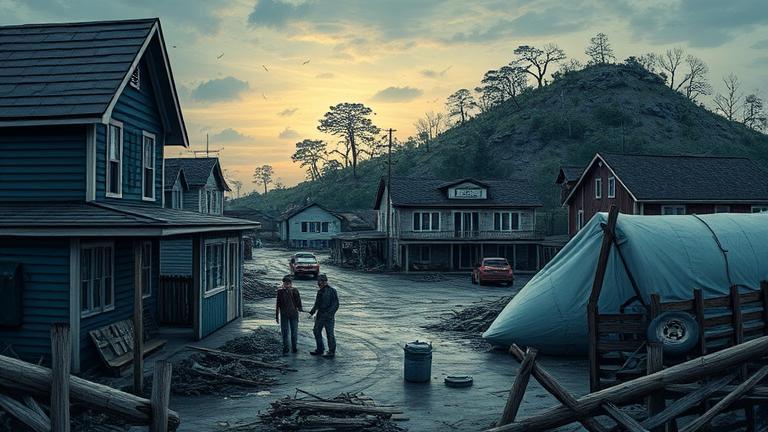 “Look over there!” Alex exclaimed, pointing at the remnants of a house collapsed under the weight of fallen trees, the urgency in his voice palpable. With shared determination, Caroline nodded, and they approached the wreckage carefully, their hearts pounding. ‘Is anyone home?’ Caroline called out, her voice reverberating off the rubble. Yet silence fell heavy, like a blanket of dread upon them.