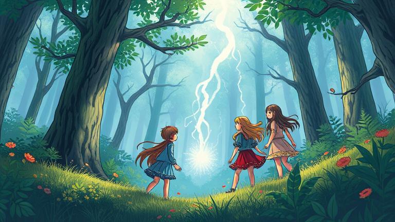 As the storm gathered, the friends felt the energy around them crackling with untamed potential. Aurelia, with her luminous form radiating energy, floated gracefully above them. ‘Everything around you is a blank canvas, waiting for your brushstrokes,’ she encouraged. Emily nodded, recalling how their collective energy had already taken shape. ‘Yes, together we created something new, something beautiful amidst all this uncertainty!’