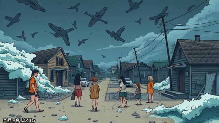 The day faded into night, and they gathered more resources to host a small community feast. An idea sparked from the whimsy of sharing—Mrs. Finch proposed telling stories of what everyone had experienced amidst their trembling survival. ‘Each story shared will become a thread in our illustrated future!’ she exclaimed passionately.