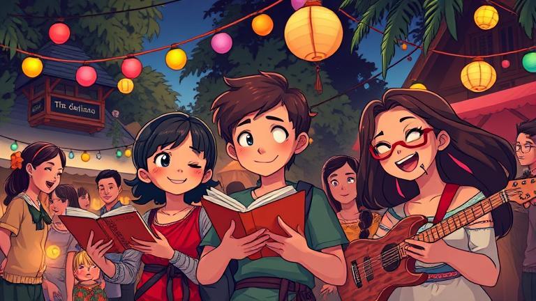 As the festival illuminated the night with laughter and camaraderie, Mia laced her fingers through the colorful quilt crafted by Chantel, and reflected on the journey they had embarked upon to revive their village’s spirit. Dreaming of a community strengthened by tales, the trio—Mia, Leo, and Chantel—had turned an old tradition into an unforgettable night.