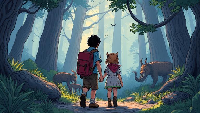 In the heart of the Whispering Woods, where trees seemed to breathe and the air shimmered with enchantment, two travelers, Lila and Thorne, stepped cautiously along a dew-laden path. Lila, a free-spirited artist with curly auburn hair, gazed in awe at the vibrant flora around her. ‘Look at that flower, Thorne! It’s unlike anything I’ve ever seen!’ she exclaimed, pointing to a luminescent bloom. Thorne, a stoic knight adorned in silver armor, merely shrugged. ‘This place is filled with wonders, Lila, but we can’t forget our quest.’ A rustle in the underbrush interrupted their moment. Out emerged a tiny, mischievous creature with large, sparkling eyes and butterfly wings. ‘You won’t find what you’re searching for in the dark,’ it chirped playfully. ‘Follow me if you dare!’ Intrigued, Lila looked at Thorne. ‘Should we follow it?’ ‘We have no other leads,’ he replied cautiously. They trailed after the creature, whose laughter echoed around the ancient trees. Suddenly, they arrived at a glade illuminated by a magical glow. There, they spotted a grand, crumbling castle entwined with vines and flowers of vibrant colors. ‘This must be where the Lost Crown resides!’ Lila gasped, her artistic spirit aflame. They entered the castle, their footsteps echoing on the stone floor. Inside, they met an old, wise oracle named Seraphim, who sat surrounded by tomes and artifacts. ‘To find the crown, you must first unlock the secrets of this castle,’ she declared, her voice like a soft breeze. Curiosity danced in Lila’s eyes. ‘What secrets?’ ‘Each room holds a riddle waiting for your answer,’ Seraphim explained, her eyes narrowing. They nodded and ventured deeper, where they found their first riddle inscribed on a weathered wall. ‘What has keys, but can’t open locks?’ Thorne furrowed his brow. ‘A piano!’ Lila shouted triumphantly, and instantly, the wall shifted, revealing a hidden passage. They entered and discovered a room filled with glittering jewels and a piano echoing their thoughts. As Thorne played a haunting melody, the jewels floated and rearranged themselves to form a map. ‘The crown lies underneath the Moonlit Tree,’ it read. Just then, the mischievous creature from before reappeared. ‘You solved one riddle! But beware, dark forces guard the crown!’ With a flick of its wings, it disappeared into thin air. Taking a deep breath, Thorne and Lila set off towards the Moonlit Tree, traversing through more enchanted pathways and solving additional riddles. Challenges grew more daunting, and shadows loomed larger, but each victory brought them closer together. Face-to-face with a specter guarding the crown, Thorne stood firm. ‘We will not back down!’ he declared resolutely. After a fierce battle of wits, they outsmarted the specter, unraveling its dark secrets and freeing its spirit. At long last, they found the crown glimmering beneath the Moonlit Tree. Lila reached out as the crown floated upwards, encircling her like a halo. ‘You did it!’ Thorne cheered, and in that moment, a deep bond formed, colored by their shared trials. They emerged from the forest, souls intertwined with adventure, forever changed. Their journey into the enchanted woods etched a new story of friendship and courage across the canvas of their lives.