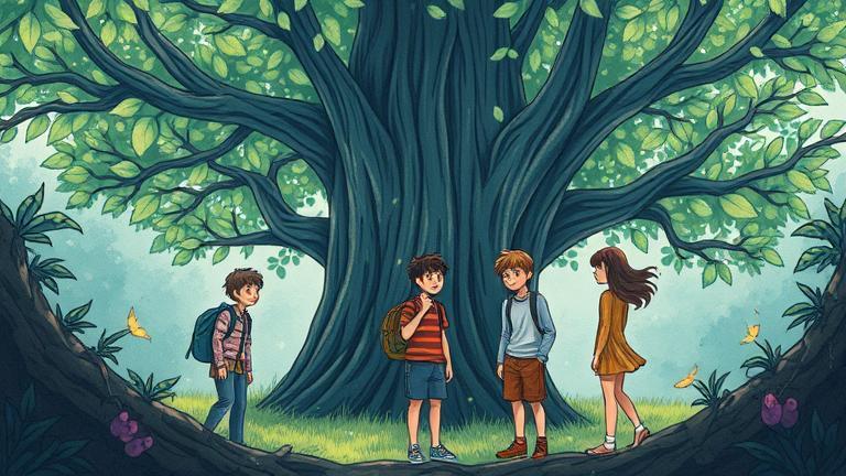 In the heart of the Whispering Woods, where sunlight barely touched the forest floor, a group of friends stumbled upon an ancient grove. Nestled between towering trees and sprawling vines, the grove was a magical sight, glimmering under the waning light of the evening sun.