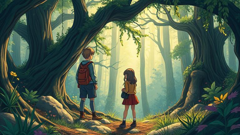 Before anyone could respond, the air buzzed ominously, and the forest seemed to hold its breath. Suddenly, shadows danced between the trees, responding as if to Tom’s discovery. “No way, it’s leading us to something!” Jess exclaimed.