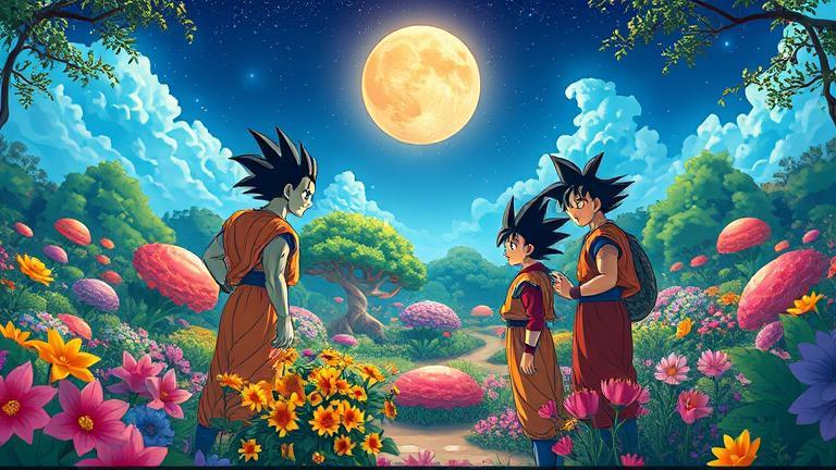 As the twilight deepened, the vibrant colors of the garden began to converse, whispering secrets of hope and resilience. Goku, standing at the forefront, tightened his grip, feeling the gentle pulse of the earth beneath him.