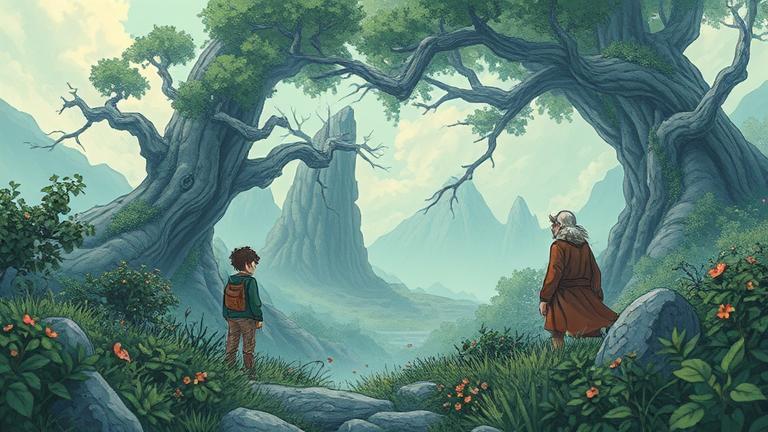 ‘Looking for the signs of the past,’ replied Mr. Jasper. ‘This land holds stories waiting to be told.’ He gestured to the intricate carvings on the trees, suggesting they were messages from another time. ‘Can you read them?’ Eli asked eagerly. ‘Not yet,’ the old man chuckled. ‘But with patience, perhaps you can learn.’
