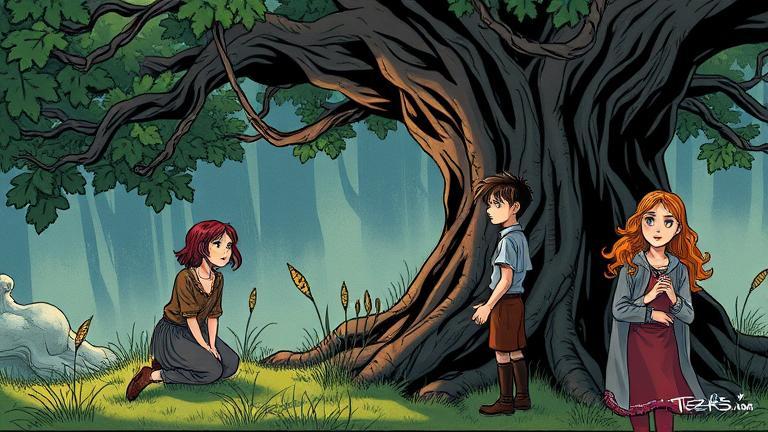 With the sun dipping below the horizon, the old oak tree radiated a golden light that enveloped the four friends in a warm embrace. The air felt electric with possibility as Lady Beatrice’s words echoed in their minds. Claire took a deep breath, her spirit imbued with newfound strength. ‘What if each time we meet, we also bring something new to the table? Something valuable to share or discover?’ she proposed, her voice steady and strong.