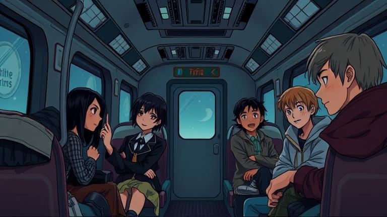 Soon, a soft voice interrupted them; it was Mia, a child-like spirit who claimed she lived on the train. ‘Where do you come from, Mia?’ Eva asked, curiosity bubbling within her. ‘At night, the memories of travelers blend into one,’ Mia explained. ‘I collect them for safekeeping.’ This peculiar revelation stirred unease in the group.