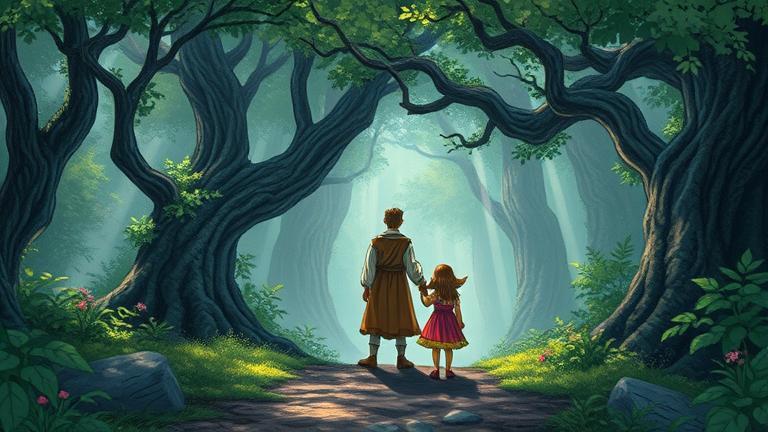 Together they stepped back into the shadowy abyss as villagers hesitantly followed. The shadows melted, revealing the heart of the forest and Arion waiting for them.