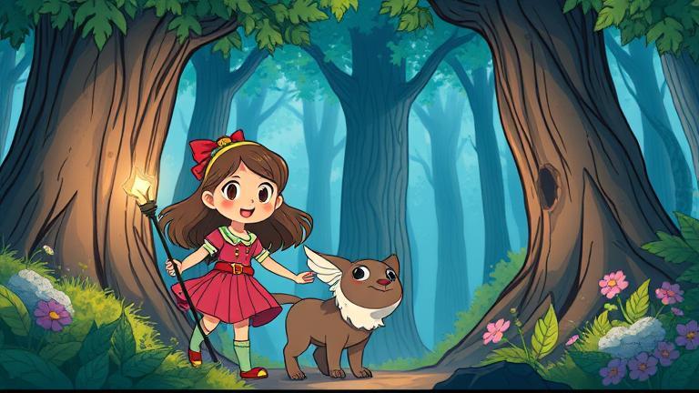 In a quaint village nestled between the mountains, two friends, Lily and Max, always dreamed of adventures. One sunny afternoon, while lying in the grass, they heard a peculiar sound coming from an ancient oak tree. ‘Do you hear that?’ Lily asked, her eyes sparkling with excitement. ‘Sounds like the trees are whispering,’ Max responded with a chuckle. Driven by curiosity, they decided to come closer. As they reached the tree, it spoke softly, ‘Welcome, young adventurers.’ The children were terrified yet intrigued. ‘Who are you?’ inquired Lily. ‘I am Eldrin, the guardian of the Whispering Woods. Will you dare to enter and uncover its hidden secrets?’ Max eagerly accepted this challenge. ‘We’re ready for anything!’ Together, they ventured into the woods, where a shimmering atmosphere welcomed them. Suddenly, an enchanting creature appeared—Pippin, the guide of the woods—a panting, fluffy beast with delightful wings. ‘Hello! I’m Pippin! Ready for an adventure?’ The two friends burst with excitement, ‘Is this place real?’ Pippin beamed, ‘Oh yes, but beware! Not everything is as it seems.’ They moved deeper into the woods, encountering gleaming flowers and whispering brooks. The captivating sights were magic personified, leaving them mesmerized. ‘What kind of secrets lie here?’ Lily asked, captivated by glowing mushrooms in a nearby grove. ‘Legends say of spirits and treasures, but also guardians who protect them,’ Pippin replied, flitting joyfully. Their exploration led them to a winding river, where ethereal fish danced weightlessly, but a sudden shadow swept across, chilling their adventure. A troll with sparkling skin stepped forward threateningly. ‘Halt! What do you seek in my territory?’ Panic surged through Lily, but she bravely answered, ‘We come in peace!’ Max murmured, fearful, ‘Should we go back?’ But Pippin flitted around the troll, asserting, ‘They’re not here to cause trouble—a simple curiosity! They wish to learn.’ The troll’s expression softened as he listened. ‘I can sense your hearts. But first, you must prove yourselves and find the Lost Gem of Aeloria from the enchanted cave.’ Lily boldly inquired, ‘Where’s this cave?’ Pippin led the way to a vine-covered entrance. ‘Inside, magic tests your spirit,’ Pippin warned. As they ventured in, eerie echoes rattled around them. A voice called to them: ‘Only those with pure hearts may pass.’ Gripping a precious necklace from his grandmother, Max declared, ‘We do this for our village.’ Sensing their determination, the path illuminated before them, revealing a mystical altar where the Lost Gem glimmered atop it. Suddenly, a wave of darkness surged to obstruct their way. Remembering her grandmother’s tales, Lily called out, ‘Kindness is key!’ Channeling thoughts of love and compassion, the darkness slowly retreated, revealing the gem. Gripping it together, they felt unity bond them deeply. Upon their return to the surface, the troll awaited with a proud grin. ‘You have passed the tests many have failed. You’ve shown the true treasures of the heart.’ Pippin spun around them, exhilarated, singing, ‘Time to celebrate your victory!’ As they made their way back, knowing the gem radiated magic between them, they treasured the thought that the heartbeat of the Whispering Woods would eternally call them back for further adventures.
