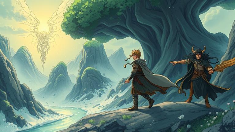 The trio traveled at a brisk pace, traversing lush meadows and vibrant forests filled with intricate wildlife. Each step resonated with the earth, becoming more familiar through their growing bond with the elements. Before long, they arrived at a serene glen where the Ancient Vallure Tree stood, majestic and unwavering. Its colossal roots sprawled like mighty arms into the depths of the earth. But upon inspection, they noticed something odd; vibrant flowers were wilting at the tree’s base.