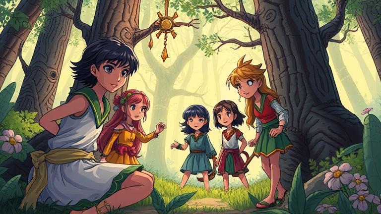 Milo’s eyes widened. “Of course, we will! What must we do?” Elara echoed, her excitement bubbling over. Lyra nodded, sensing their determination. “You will need to gather three artifacts hidden within the forest: the Tear of the Moon, the Heart of the Flame, and the Shard of Time. Together, they hold the key to defeating the Hunter.”