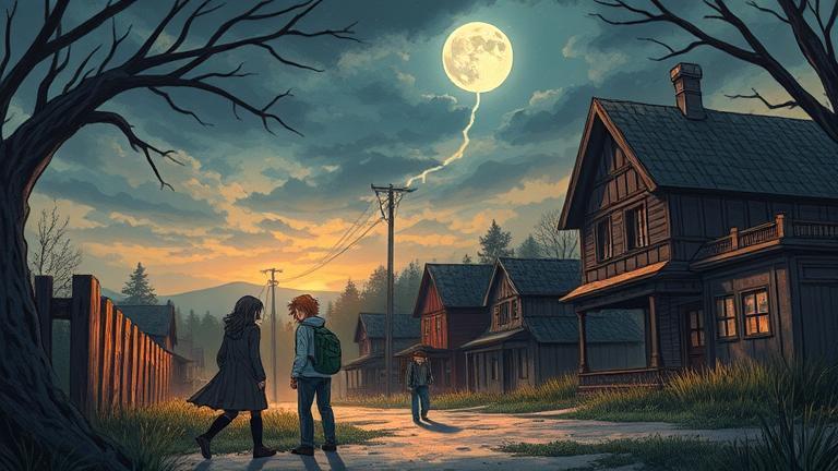 It was a moonlit night in Eldridge Town when Emily, Jake, and Sara huddled around a flickering campfire in Emily’s backyard. The air was thick with the scent of pine and nostalgia. ‘Have you guys ever heard about the Whispering Shadows?’ Emily asked, her eyes sparkling with mischief. \n ‘Those are just creepy kids’ stories,’ Jake shrugged, tossing a twig into the fire. \n ‘But what if they are real?’ Sara challenged, wrapping her arms around herself. ‘My grandma used to tell me stories about the shadows that guard hidden secrets in the woods.’ \n As the flames danced, they heard a rustling nearby. ‘Probably a raccoon,’ Jake scoffed, but the uncertainty in his voice betrayed him. \n Suddenly, a voice pierced the darkness. ‘The shadows know your secrets, and they await your truth.’ The trio froze. It was Mrs. Thompson, the enigmatic old woman from down the street. She had a reputation for knowing things she shouldn’t. \n ‘Mrs. Thompson! You scared us!’ Emily exclaimed, attempting to mask her fear with laughter. \n ‘Beware, young ones. The shadows will reveal what you fear the most,’ she warned cryptically before vanishing into the night. \n ‘This is ridiculous,’ Jake grumbled, but the chill in the air suggested otherwise. They decided to venture into the woods, drawn by a mix of bravery and curiosity. \n As they wandered deeper, the trees seemed to come alive, the whispers growing louder. ‘What if shadows really do exist?’ Sara whispered, her voice trembling. \n Just then, they stumbled upon an ancient tree with carvings on its trunk. ‘Look!’ Emily exclaimed, tracing the patterns with her fingers. ‘These symbols might tell us something.’ \n ‘They look like… values? Courage, friendship, truth?’ Jake read aloud. \n ‘Or perhaps the shadows are testing us,’ Sara mused, eyeing the darkness that loomed. \n ‘Let’s keep going,’ urged Emily, her adventurous spirit igniting. As they walked, they each began to recall their personal fears—Sara’s fear of loneliness, Emily’s apprehension about failure, and Jake’s dread of rejection. \n The whispers grew louder as if the shadows were echoing their thoughts. ‘Face us!’ they howled. ‘Reveal your fears.’ \n ‘What do we do?’ Jake panicked. \n ‘I know,’ Emily replied. ‘Let’s share our fears out loud. It might break the curse.’ \n Taking a deep breath, Sara started, ‘I’m scared I will never belong anywhere.’ \n Emily followed, ‘I’m terrified of letting people down.’ \n And Jake finished, ‘I’m afraid no one will ever love me.’ The forest fell silent for a moment, then the shadows swirled around them, disorienting yet welcoming. \n ‘You are stronger than your fears,’ the voices whispered, no longer menacing but guiding. ‘Embrace them, and they will reveal your true selves.’ \n The trio felt an overwhelming sense of relief wash over them. They had confronted their shadows and emerged empowered. As dawn broke and the first light touched Eldridge Town, they returned, forever bonded through their revelation and understanding of the whispered truths. \n ‘I think we just found the magic of the shadows,’ Jake smiled, facing the others with newfound confidence. \n Sara nodded enthusiastically, ‘And a deeper friendship in the process.’ \n ‘Next time, we go during the day!’ Emily laughed, savoring the warmth of the rising sun and the laughter of true friendship.