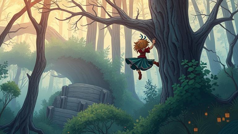 One fateful day, while exploring deeper than ever before, she stumbled upon a shimmering portal tucked behind a moss-covered rock.