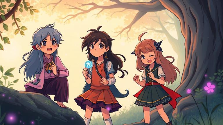 Feeling joyous energy suffusing their beings, the friends exchanged smiles, understanding that their adventure was only beginning. They stepped forward, feeling forever changed by their experience, carrying the magic of the grove in their hearts—a forever reminder of the power of hope, trust, and friendship.Superficial worries faded, leaving serenity, courage, and laughter to fill their journey together in the woods.