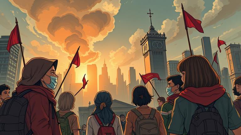 Zara shouted, ‘For the families cloaked in despair, who deserve to live freely!’ Misa’s heart raced with ecstasy. ‘Time to share our flame! Together!’ Raito unfurled their collective manifesto, each word cascading on hopes and dreams that danced in the atmosphere. In that singular moment, their stories became powerful sparks, transforming the air, igniting infinite flames of rebellion beneath which the city found its voice, disassembling every shard of oppression. United they rose, emerging from the crumbling shadows into new life, poised to rewrite destiny—a collective heart, lighter against the backdrop of the horizon. As dawn broke, their voices hitched at the intersections of light and darkness, intertwining narratives and breathing life into the revolution that awaited. The heartbeat of the city was louder now, a symphony of defiance and hope, forged by the allies who dared to dream.