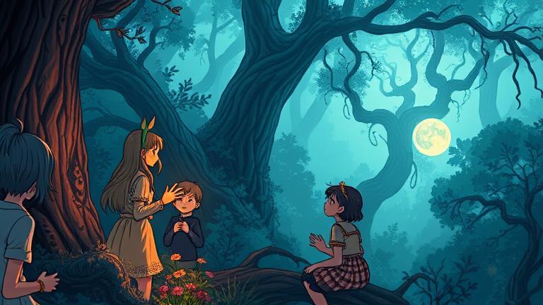 In the quaint village of Willowbrook, four lifelong friends—Lila, Ethan, Maya, and Jake—decided to venture into the Enchanted Forest after hearing old folklore about spirits guarding hidden treasures. As they wanders deeper into the wilderness, the trees seemed to whisper secrets. “Do you hear that?” Lila paused, her ears perked at a faint melody. “It sounds… beautiful,” Jake replied, looking puzzled yet intrigued. Maya, ever the skeptic, rolled her eyes. “It’s just the wind playing tricks, guys. Let’s not get lost in fairy tales.”