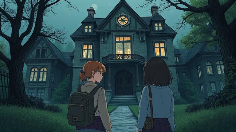 As they approached the dilapidated structure, its towering silhouette loomed ominously against the twilight sky. Nia hesitated, ‘Are we sure we want to do this?’ Eli reassured her, ‘It’s big fun! Besides, it’s just a spooky old house.’ Upon entering, the air inside felt thick and cold, a stark contrast to the warm light outside. The floor creaked beneath their feet, adding to the eerie atmosphere. ‘Wow, look at this place!’ exclaimed Sam as he stumbled upon an old, dusty mirror. Everyone gathered around, fascinated. ‘Do you think it’s magic?’ Jade asked with a laugh.