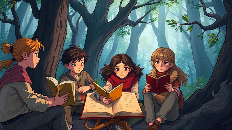 As light danced and shadows twisted, the friends filled with storytelling purpose vowed—each tale they shared would echo forever in the hearts of both the woods and the village of Eldergrove, creating a legacy that no shadow could reclaim.