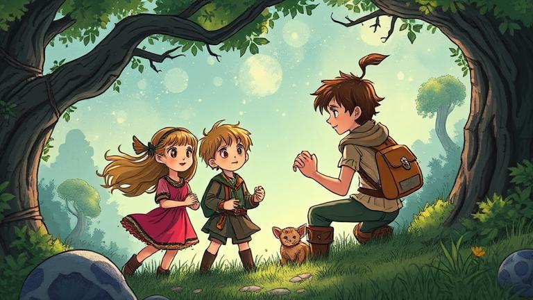 After emerging victorious from their confrontation with fear at the Tree of Whispers, Lila, Sam, and Tom stood hand in hand, brimming with newfound confidence. Lila turned to the group, ‘What if the Tree has more to tell us? We must listen carefully this time.’ Sam, energized by the adventure, nodded. ‘Yes! Let’s ask it what ties our destinies in this glade!’ Tom looked a bit hesitant but his curiosity shone through. ‘You think it can guide us further?’ he quizzed, looking back at the magnificently towering tree. Elowen, still dancing joyfully around them, chimed in, ‘Absolutely! Guardians of the glade, like the Tree, appreciate those who approach with open hearts.’ The trio, hearts racing, once again placed their palms upon the Tree’s rough bark while inhaling deeply. A soft murmur filled the air, swelling with wisdom. ‘Every adventure begins with a purpose. Speak your desires!’ With determined spirits, they vocalized, one after another. Lila expressed her wish for empowerment to guide others through their challenges; Sam wished to explore lands of legends and hidden knowledge; Tom concluded with a simple plea—to find serenity amid the chaos of his thoughts. The responses of the Tree echoed, carrying the youth’s energies to the wind. Suddenly, glowing whorls of light emerged, swirling around them. Elowen clapped her tiny hands, eyes sparkling, ‘Wishes granted require action! Your next adventure awaits beyond the shimmering river!’ With their newfound resolve, they set off to the riverside, laughter ringing like bells. However, as they arrived, the river seemed to trickle more cautiously, glittering like a jeweled path. Sam was the first to react, ‘Is it supposed to be like this? The water seems almost… watchful.’ Tom knelt, poking at the pebbly bank, ‘I can feel something. There are layers here; it’s almost breathing!’ Elowen grinned, spinning around in delight. ‘You’re right! The river reflects the heart of the glade, perhaps it will reveal untold stories.’ With cautious excitement, Lila suggested leading the way downstream. She carefully stepped on a rock, her friends following closely behind. Large lily pads dotted the water with vibrant blossoms that looked as if they sang along with the gentle splashes. Suddenly, the surface shimmered, unveiling a reflection that shifted from their faces to reveal an illustrious past. The trio gasped in unison as luminous images danced around them—tales of past adventurers with giant spiders, underground paths, and wise old oracles. Tom pointed at the fading images ‘Do you recognize any of these quests? We could follow their paths.’ Intrigued, Sam examined a glimmer then exclaimed, ‘Look over there! That light seems brighter compared to the others.’ Driven by sheer curiosity, the trio moved closer, their shadows darting on the surface of the enchanted river. As they approached the warm glow, they could discern a faint whisper. Elowen’s curiosity sustained a sense of adventure, ‘Shhh… listen. It’s from the waterfall ahead!’ With nervous excitement, they swam the shallow stream, reaching the entryway of a hidden cove. The prismatic waterfall erupted before their eyes, cascading down sparkling crystals that seemed to echo laughter of those who’d come before. As they approached, a ripple of energy washed over them. Lila turned to her companions, awe etched in features, ‘What if this is our test of bravery?’ Elowen beamed, clapping her hands, ‘What are we waiting for? Let’s face it together!’ They clasped each other’s hands, breathing deeply in unison, inching ever closer to the brilliant curtain of water. As they stepped through the falling hues, they emerged to find a magnificent realm where sunlight fused seamlessly with twilight, swirling with butterflies embodying every color imaginable. They gasped. New trails and paths stretched infinitely in all directions, beckoning them forward. Lila felt a surge of belonging. ‘This place—it’s magical, but it feels like we belong!’ Sam squinted toward the horizon, his heart racing, ‘Let’s make sure we uncover everything. Together!’ Tom, now energized by bravery, enthused, ‘This glade holds stories yet to be told. Let’s craft our narrative as guardians of this new wonder!’ And so, as twilight enveloped the sky, they made a pact, in the heart of the enchanted glade—a commitment to uncover the magic of their world and forge their destinies bound with laughter, courage, and friendship that could shake the very roots of existence.