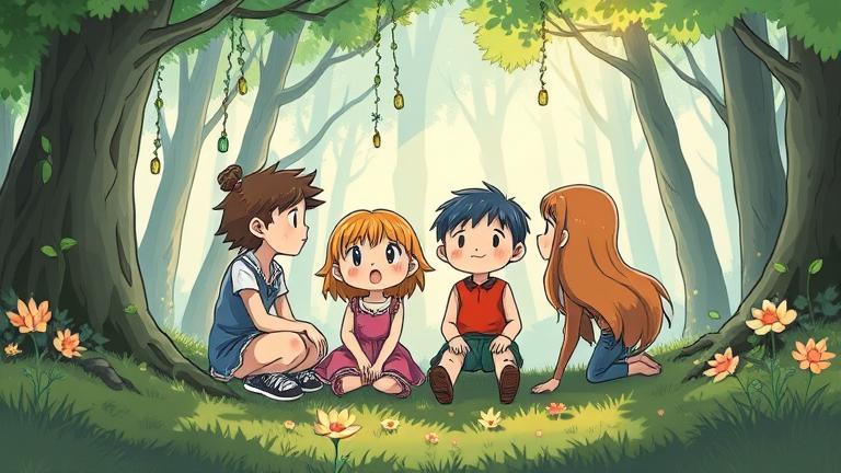 In another part of the woods, Sam found a cozy niche near a sparkling pool. With every stroke of her paintbrush, emotions swirled within her: joy, sadness, and an overwhelming sense of loneliness. ‘Why do I always feel like I need someone to validate my art?’ she pondered aloud. Her orb flickered, illuminating a canvas bursting with vibrant colors. Meanwhile, Ava sat by the creek, the gentle sound of the water sparking memories. ‘These characters have always been my friends, but is it real love if they’re not here with me?’ she mused, feeling the sting of longing. The orb blinked with gentle hues of understanding, filling her with warmth. Max wandered through a sea of swaying wildflowers, observing the dance of butterflies. ‘Nature feels like an old friend,’ he smiled, but soon his thoughts slipped back into loneliness. ‘Surely, even beautiful views can’t take away the feeling of missing someone.’ As the sun began to set, the friends met back at the giant oak. Tension crackled in the air as they prepared to share their experiences. ‘I missed you all so much,’ Noah confessed, the weight of solitude easing as he spoke. ‘I realized that even when I’m alone, I have the power to create my own joy.’ Sam felt tears prickle her eyes. ‘Painting reminded me how to express my feelings, and even though I was by myself, the art became my companion.’ Ava nodded, inspired by her friends. ‘Reading helped me realize that I can share connections within my own imagination. These characters, though fictional, always reflect who I am inside.’ Max smiled broadly, his heart swelling. ‘Being here, feeling the richness of these woods helped me realize that beauty can exist in both solitude and companionship.’ Together, they clutched their orbs, bursts of colors lighting up the night. Each friend, transformed after their experiences, felt echoes of their fears subside. The enchanted woods were awakening their inner strength. ‘Let’s continue this journey,’ Ava suggested, eyes shimmering with hope. ‘Each week, we’ll confront something new and share what we learn.’ They all agreed, hearts full of anticipation. The woods seemed to whisper appreciation, and the stars above twinkled as if celebrating their friendship and their journey into the depths of the unknown. Together, united through their orbs and shared vulnerabilities, they ventured onward into the heart of the woods where every fear promised an opportunity for growth, adventure, and the magic of unbreakable bonds.