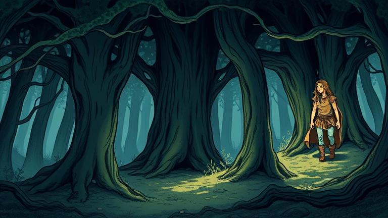 As they walked, the atmosphere changed, shadows danced, and a hushed silence enveloped them. Suddenly, Isla spotted a flicker of light through the branches. ‘What is that?’ she whispered, her eyes wide with curiosity.