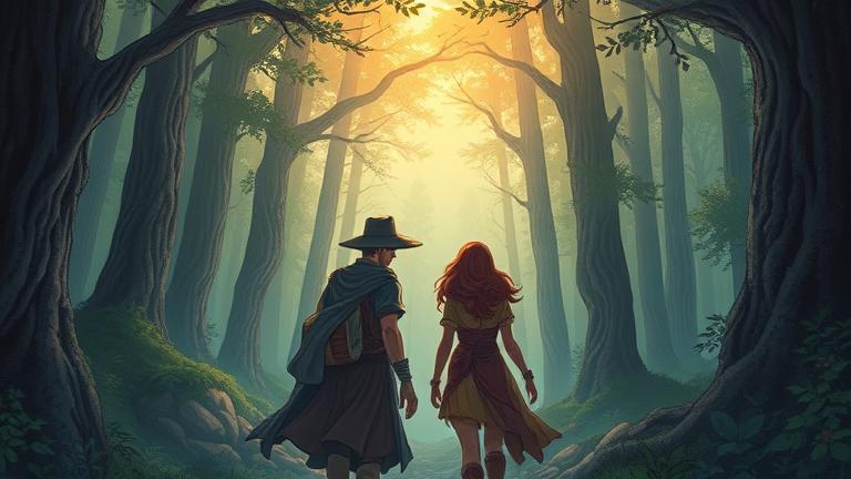 Hand in hand, they ventured forth, weaving through the mystical trees as whispers danced around them. Each step echoed the heartbeats of the forest, guiding them on their quest.