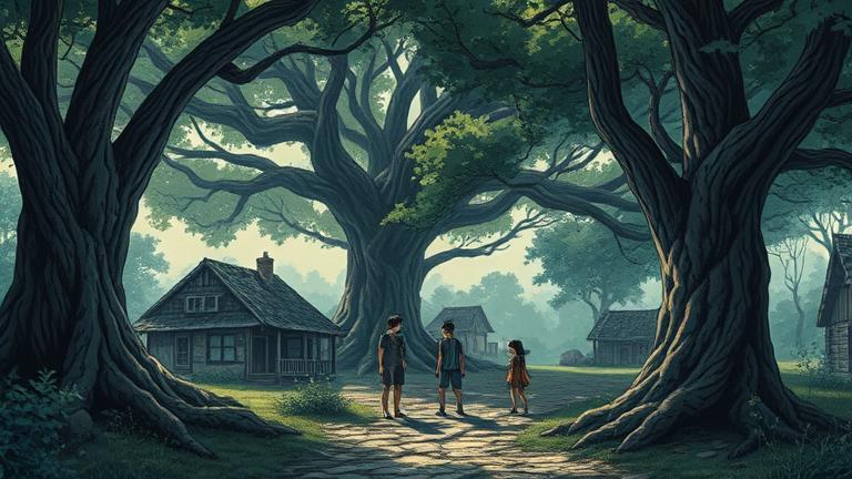 Suddenly, they noticed ethereal figures forming among the trees; the faces were sorrowful yet compelling. ‘What are those?’ Ravi gasped, his skepticism waning. The figures whispered in unison, *’Guardians of the grove, we are. Seek not what cannot be undone.’* Mira stepped forward, her heart pounding. ‘We don’t mean any harm! We were just curious!’