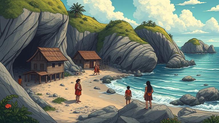 Upon arriving at the coast, the sheer expanse of rocks and surf greeted them. Gerald squinted toward the horizon, ‘Truly, it looks like our futures are hidden amongst those stones.’ He led the charge, filled with an adventure seeker’s bravado.