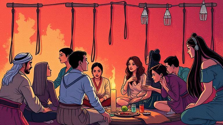 As if on cue, an eclectic group of friends entered, each bearing their own artistry – Dylan, the musician with an acoustic guitar slung over his back, and listless Charlie, lacking any brush or instrument but full of spontaneous stories, stepped closer to Array’s canvas. ‘Is this how you feel, Array?’ Charlie asked, squinting. ‘It’s like you’re capturing whispers of the soul.’