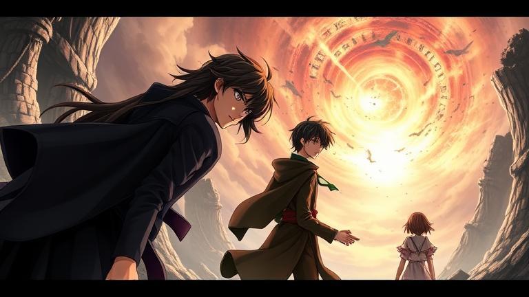 Taking a deep breath, Lelouch reached out through the echoes to connect with his younger self. ‘Listen closely, young Lelouch!’ His older voice boomed through dimensions.