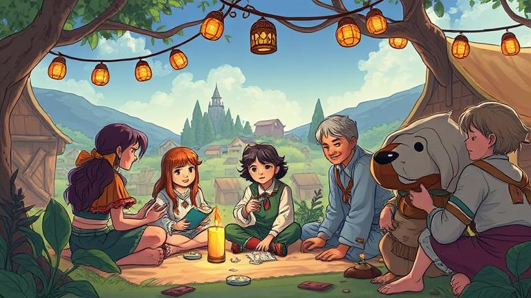 The night turned festive under twinkling stars, and with lanterns illuminating their artwork, the villagers of Eldoria converged once more to share their woven narratives.