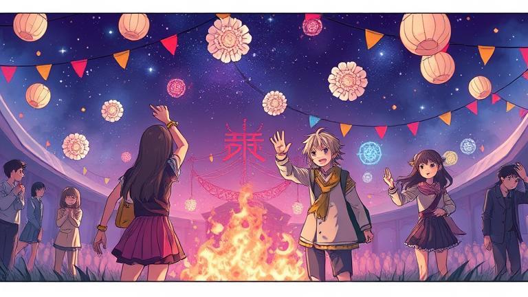 Nami steadied herself, eyes resolutely narrowed. ‘Our town will not fall to darkness; this festival is our home!’ she exclaimed, inspiring confidence around them.