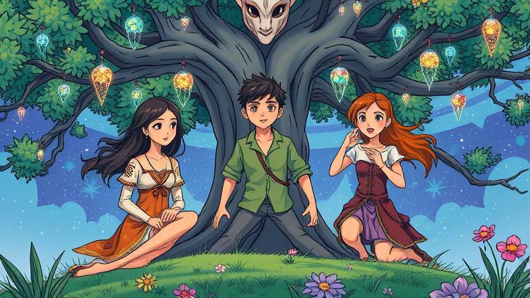 A low growl vibrated through the air, silencing the mirth. With an authoritative gaze, an immense tree emerged from the shadows. ‘I am Oakenis, guardian of this grove,’ it spoke with a voice deeper than thunder. ‘You wish to delve into your own truths, do you?’ The friends exchanged nervous glances. Lin, emboldened, stepped forward. ‘We want to embrace our fears to enrich our art. We need to understand our stories,’ she declared, her voice echoing courage.