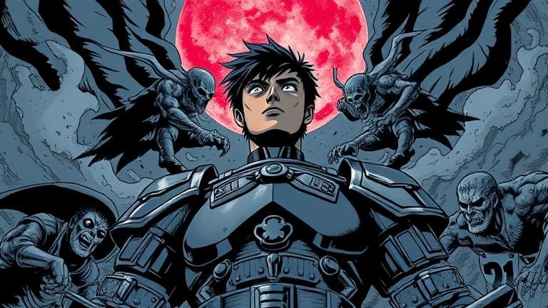 In the shadow of a crumbling castle, Guts stood at the precipice of despair, his sword resting against the earth as he gazed into the distance. The wind carried a whisper of madness from the depths of the kingdom while he contemplated his next move. ‘I can’t falter now,’ he muttered, tightening the grip on his hilt. ‘Not while there are still demons to slay and innocents in peril.’