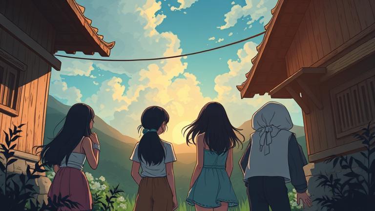 Wana spun joyfully in their midst, her laughter ringing out like a chime. ‘See how courage gathers!’ she sang, pulling the energy around them closer. With an oblique grin, Aiko, the ancient spirit, emerged, his presence commanding and grand. ‘You enjoy jubilance while dragging unseen grief beneath your feet,’ he warned. His voice echoed like boiling thunder, ‘Embrace the shadows—only then can your joy become sacred.’ The friends exchanged nervous but resolute glances. ‘What is it that we must do?’ Hiroshi urged forward, emboldened. ‘To uncover the light, address the darkness. Name your struggles!’