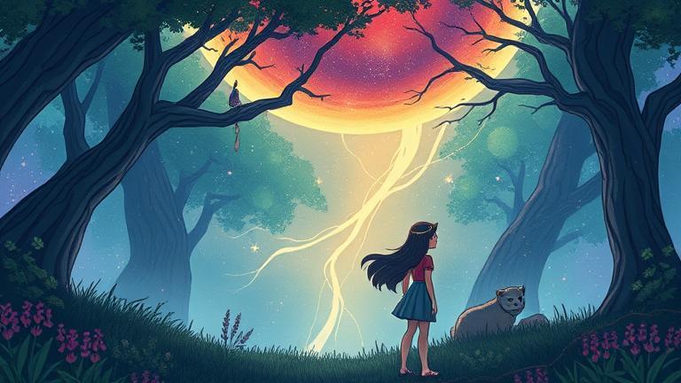 As Lin, Elara, and Dax ventured further into the Celestial Grove, the vibrant colors shifted around them, morphing into memories intertwined with emotions.