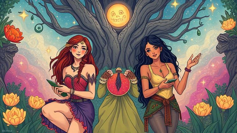 As dusk beckoned, guiding Lin, Elara, and Dax deeper into the Celestial Grove, the air hummed with energy. Ember, the tiny dragon-like creature, led them toward an ancient oak tree, its bark etched with stories from long ago. Lin felt drawn to it, resting her hand against the textured surface. ‘What wisdom do you harbor?’ she murmured, half-expecting an answer.