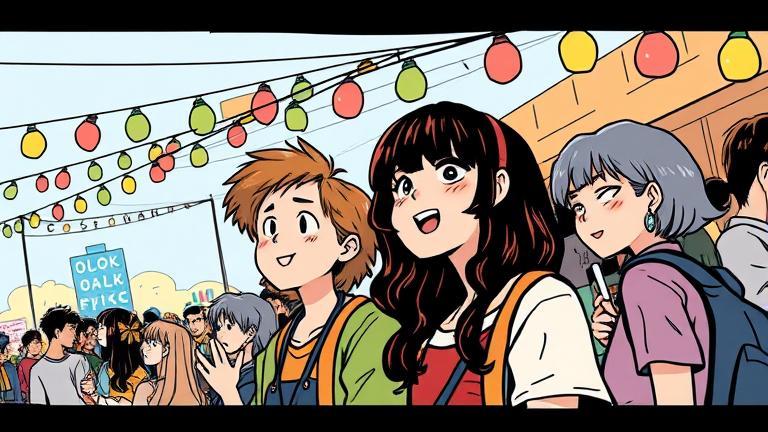 Meanwhile, Lily spotted Mina, a shy girl holding a sketchbook. ‘Do you want to join our storytelling circle?’ Lily called out, her eyes sparking with kindness. After a moment of hesitation, Mina smiled and nodded, cautiously stepping forward. ‘I…I’ve written some stories too,’ she whispered shyly, revealing she was also an artist with a flair for telling tales.