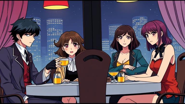 Fujiko, adjusting her scarf, smirked and replied, ‘First, breakfast. We can’t plot if we’re hangry, can we? Besides, alliances must be solidified over a good meal.’ Laughing at their misfortune, she glanced at Valentina with a twinkle of mischief.