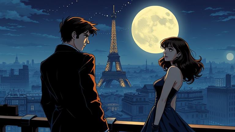 As Lupin and Fujiko caught their breath atop the roof, they heard distant sirens wailing, the city awakening to chaos. “We should move before we’re surrounded,” Fujiko urged, her eyes scanning the horizon. Just then, another figure emerged from the shadows; a tall woman with raven hair and sharp eyes. “I wouldn’t leave just yet, darling. I’m here for the Crimson Dagger too,” she declared, smirk plastered on her face. Lupin’s eyes widened in surprise. “And you are?” he inquired, his fingers gripping the dagger tighter. “I’m Valentina, the best forger in this city and you’re going to need my skills if you want to keep that gem,” she replied, stepping closer, confidence radiating from her. Placing her hands on her hips, she gave them a once-over. “You both look a mess. We need to get away from here. LeClerc will be back, and I’m not fond of being caught. How about a daring sort of escape?” With a raised brow, Lupin leaned on his sword, considering the potential alliance. Fujiko crossed her arms, an eyebrow lifted, unsure of Valentina’s agenda. “What’s in it for you?” Lupin asked. A slow smile crept across Valentina’s face. “How about a share in the rewards? Or perhaps the thrill of a heist unlike any other?” Kristen, having followed them from the shadows all along, joined the dialogue. “If there’s glory to share, I’m in too, but there’s a risk in trusting strangers,” he warned, eyes narrowing. “Better alliance than our rivals down there,” Valentina pointed toward the street flooded with LeClerc’s men. Owning that moment of decision, Lupin nodded. “Fine, but loyalty isn’t given lightly in our world.” Together, the unconventional quartet plotted their escape. Valentina proposed a daring leap into the neighboring marketplace’s fabric stall to soften their fall as an escape route. “Just follow my lead,” she whispered. With hesitant heartbeats, they prepared. “On three—one, two, three!” They leaped, landing amidst surprised merchants and startled shoppers. As they regained composure, they dashed into the throngs, ducking between stalls of vibrant textiles. “I didn’t see that coming,” Fujiko laughed, her fear dissipating into the camaraderie of chaos. “How about dinner at my place later to celebrate?” Valentina mocked, grinning broadly. Just then, Lupin intertwined his fingers with Fujiko’s as they hid behind a colorful tapestry. “You’re sure about letting her in on this?” he whispered in her ear, concern coloring his voice. “She’s no more a stranger than our current friends and foes,” she replied with determination. As the search party drew closer, they darted behind rows of fragrant spices and bustling crowds, hearts racing, exchanging panting glances fueled by adrenaline. Eventually, they slipped into a narrow alley, where Lu took charge, eyes sharp. “Let’s bring this dance to a quiet close. We’ll split up east and west, rendezvous back at the old clock tower.” They separated, hearts racing from the thrill yet united in a shared purpose. After a grueling chase across labyrinthine streets, they each found their way to the clock tower. Laughter escaped them, relief washing over their tense shoulders; camaraderie was blooming between them all. “So, where is our jewel now?” asked Kristen, playful mischief returning to his voice. Tension began to dissolve in the air until a sudden crash interrupted their banter; LeClerc had found them again. “For crying out loud, must it end like this?!” snorted Lupin, flipping theatrically. Engaging in one final show of wits, Lupin contingently flung the dagger to Valentina mid-chase. If Villa could catch it, it’d seal their continued escape and prove her allegiance. Timing was tight; they surged against LeClerc and his grip tightened. Instinctively, Goemon appeared, sword poised to meet any cross, steady amid the escalating havoc. LeClerc let out an evil laugh, but Valentina eyed him defiantly, catching the dagger mid-air. The tide turned as the four combined forces against a singular goal—freedom. “You did well, Valentina!” Lupin cheered as they evaded capture one final time. Each heart rhythmically aligned with the pulse of Paris as nighttime turned into daybreak; this fleeting eternity was theirs alone. Bound together with recently forged trust, they glided on the waters of fate like whispers carried by a breeze, while the third star ascended into the sky and their city slept underneath the promise of newfound alliances.