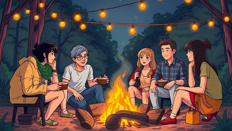 Jake interrupted, ready to share an infamous camping story. ‘You won’t believe what happened the first time I tried to grill fish. It was a disaster!’ The group’s curiosity was piqued immediately. ‘What happened?’ Lucy asked eagerly. ‘I doused it in soda to save it from burning!’ Jake exclaimed, igniting a frenzy of laughter. Janet, always competitive, jumped in, ‘Alright then, next year’s showdown is on! Who’s winning it?’ Just as replies cascaded, a sudden rustle nearby silenced the chatter.