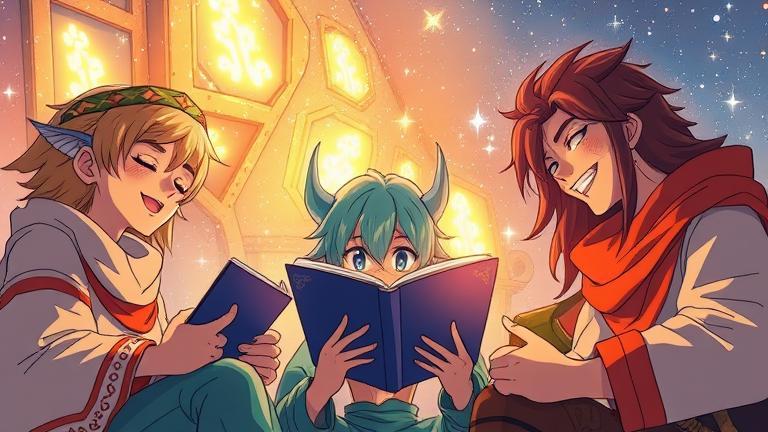 “Let’s weave a new tale tonight,” declared Ashira, a spirited elven sorceress, her emerald eyes gleaming with mischief. “Let’s share what dreams we hold beneath this celestial firmament.”