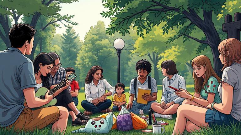 As the twilight deepened and stars peeked through the clouds, Mira sat near the vibrant mural, still glowing in the post-event evening. ‘I can’t believe how much we accomplished,’ she mused, picking a stray brush off the ground. Kael joined her, wiping paint off his hands onto his jeans. ‘And it was just a start! The excitement in everyone’s eyes… it felt powerful.’ Suddenly, a loud thud interrupted their conversation, as Jonah tripped over a rock while carrying a large paint can. ‘Oof! This is why I stick to ideas, not heavy lifting!’ he chuckled, rising swiftly to dust himself off. A few feet away, Sarah, a quiet observer from last time, approached, a thoughtful smile on her face. ‘I didn’t contribute to the mural, but can I write down what I felt?’ There was a collective air of acceptance; Mira had made space for voices that hesitated to speak. ‘Of course! Your emotions belong here too,’ she encouraged, watching Sarah pull out a worn notebook. As Sarah scribbled earnest reflections, the rest of the group lounged around the mural, embracing playful energy. Adira suddenly burst out with excitement, ‘Let’s fill next month’s theme with ‘Healing Journeys’! Everyone has a different story to share, and tonight showed how we resonate together.’ Murmurs of agreement bubbled among them. Just then, a soft voice piped up; it was Sam, now full of newfound bravado, ‘Can I lead a workshop on drawing our feelings? I realized while sketching that everyone has a visual language.’ It was as if a current of inspiration flowed through the circle, energizing them. Kael nodded vigorously, ‘Yes! And I’ll create a space for music! We can combine them. I think a drum circle would be amazing.’ Eleanor gaffled her cane, a warm glow illuminating her expressions. ‘Music, paint, and words can carry such weight. Let us weave thoughts and feelings. This community will breathe life into those creations!’ Not far off, Lila turned, guitar in hand, and said, ‘Let’s also showcase local musicians. We could have an open mic alongside!’ The ideas swirled in the air, creating a tangible excitement reminiscent of colorful threads weaving together into a rich fabric of expression. Enthusiasm spilled over as they mapped everything out on a large sheet of paper filled with scribbled notes. Theo suggested a potluck element to future gatherings, targeting food as a heartfelt connector. ‘Let’s taste our diverse backgrounds! It’ll add a flavor of belonging.’ The night twisted on with continued planning accompanied by laughter and friendly jests, driven by shared aspirations. Their imaginations meandered, prompting Kael to mention, ‘What if we document our gatherings? Each new event, a chapter of our story,’ gesturing toward Sam. With eyes widening, Sam replied, ‘I could illustrate them!’ Antes and excitement united them amid evolving ideas. As conversations flowed late into the night, they leaned into each other’s dreams, realizing possibilities hadn’t limits. ‘Tomorrow we must set up a creative workbook from our dreams!’ Mira suggested, ringing her hands in anticipation. Inspired bursts of ideas continued despite the thumping bass resonating along with Lila’s soft strumming of chords. Friendships blossomed, buoyed by vulnerability sparking laughter and artistic spirit. The night wrapped them in a quilt stitched from hope and connection, leaving each member aflame with melody, color, and heart. Soon, laughter and music danced in crescendos while they wrapped up, a testament to bonds forged in art. United through futures entwined with creativity, they all departed with promises echoing, imbued with colors, sounds, and stories waiting to emerge with moonlit confidence. They would continue creating together, endlessly weaving their dreams into the world, threads intertwined for nights that would never feel lonely again.